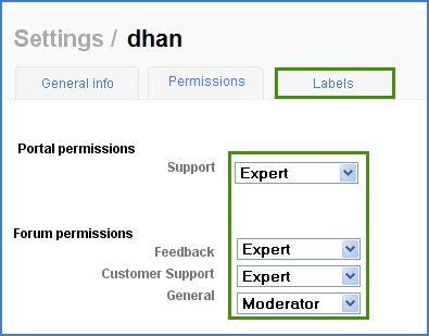 This section allows you to map portal labels and forum labels for the selected member. You can map individual labels for portal and for every forums, associated with the portal. In addition, you can also create labels for the selected member.