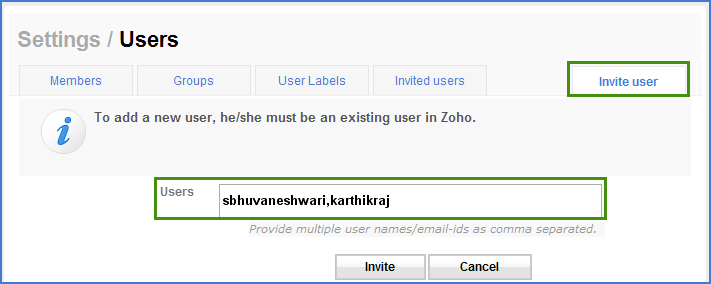 Note: Invite Users option will not be available in an Intranet Portal ( Zoho Buiness - Organization account). If you wish to add users to the intranet portal, you need them as your organization members in your Zoho Business account, so that they get added to your intranet portal automatically.
