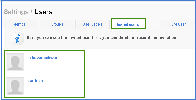 Furthermore, you can go ahead and view the list of pending invitations in the Invited Users section. You can also resend the invitations or delete the invitation that are sent by mistake.
